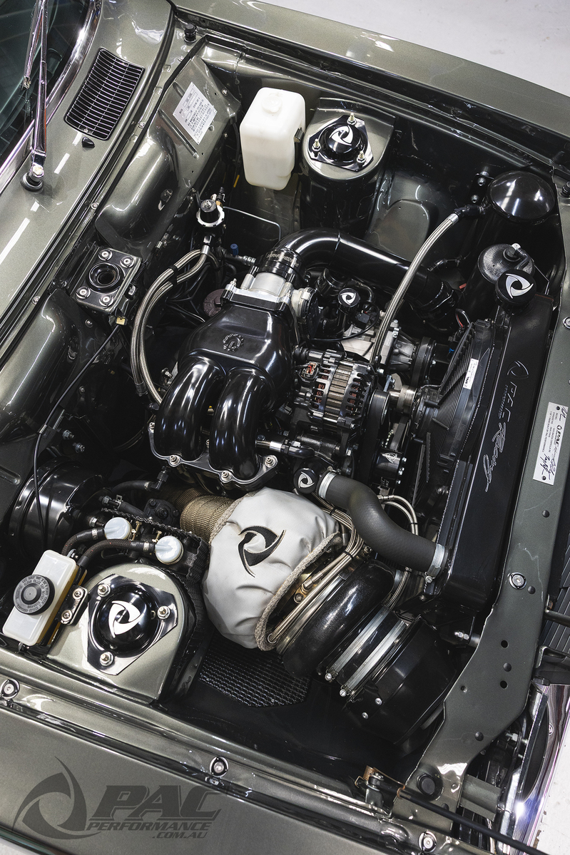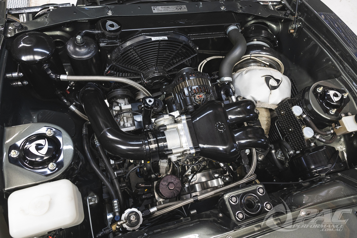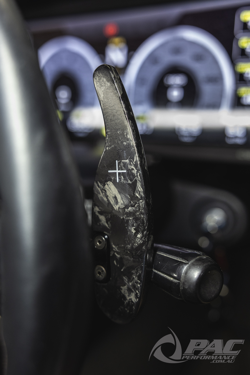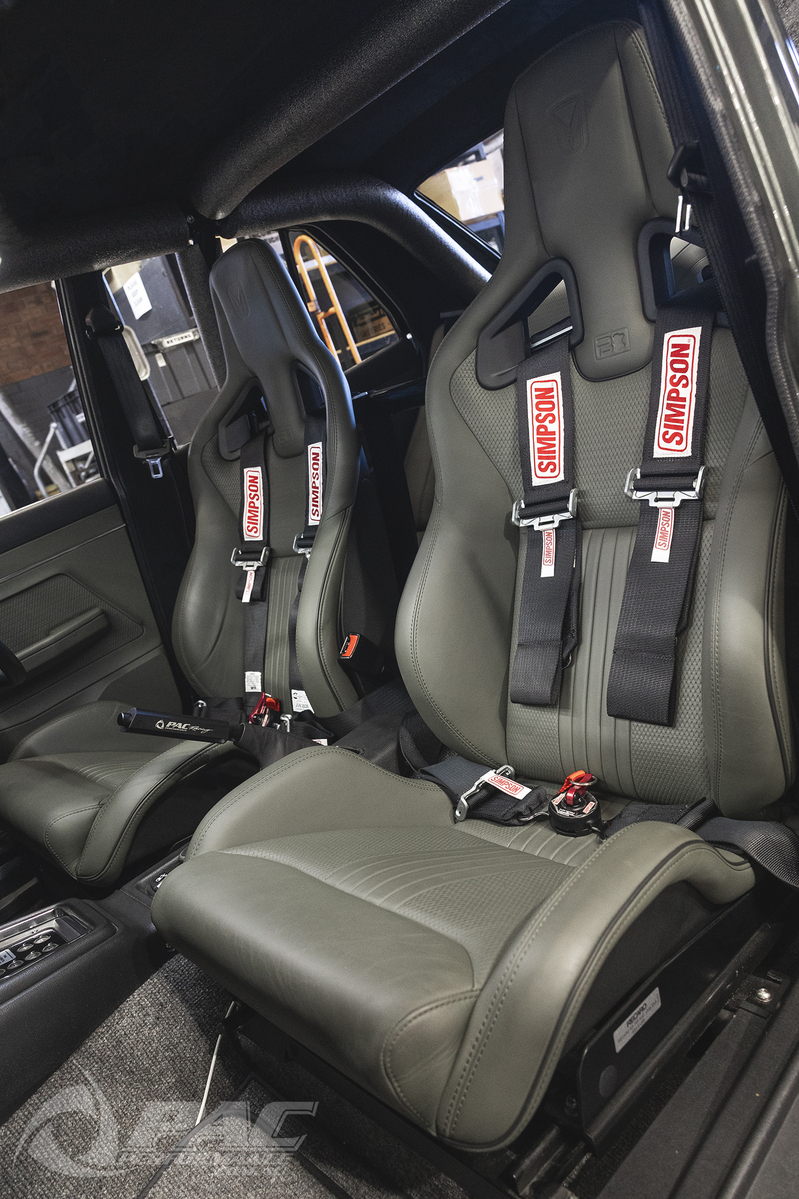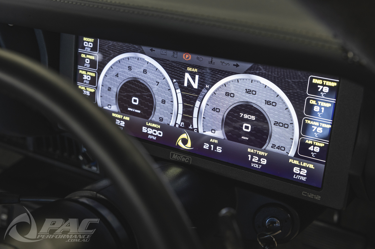 Interior: Full leather retrim, Recaro Sportster CS front seats & custom rear seat, moulded door cards & billet steering wheel by Brent Parker Motor Trimming, MoTeC C1212 Dash, Paddle Shift System with custom flaked carbon paddles & Billet Pac H/Brake Grip, Simpson harnesses, power windows & custom dash-mounted AC Unit