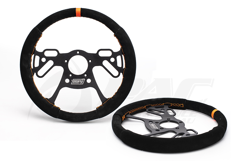 The MPI-DRG2 features over 10 button locations, giving even the most demanding racers infinite adjustability, while the soft suede covering with high-visability MPI Orange marker, provides a high grip, natural feel, reducing the effort needed to hold the wheel while increasing driver sensation.